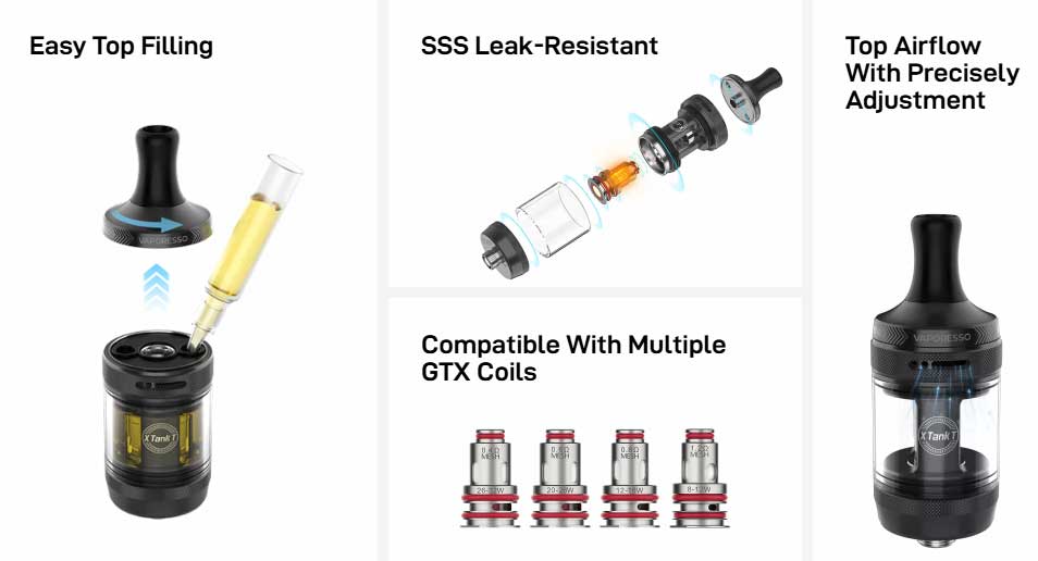 Zusätzlich ist der Verdampfer so konzipiert, dass er auch im täglichen Gebrauch stabil bleibt und keine Leckagen aufweisen sollte. Die schlüssige Konstruktion und hochwertigen Materialien tragen dazu bei, dass der xTank T wenig anfällig für Undichtigkeiten ist, was das Dampferlebnis erheblich verbessert.